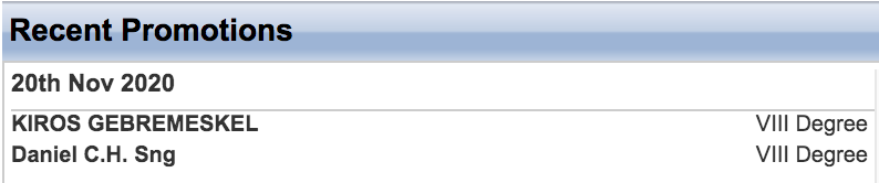 On Friday, 20 November 2020, the International Taekwon-Do Federation has officially promoted Master Daniel Sng to 8th Degree.